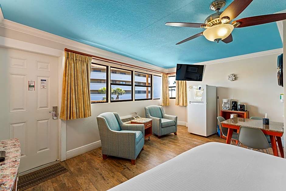 Located on level 2, this studio suite features a partial Gulf view and a kitchenette with a stovetop, microwave, refrigerator, and tea- and coffee-making facilities. A flat-screen TV, safe, hairdryer, and ironing facilities are included. A seating area in the exterior hall is offered.